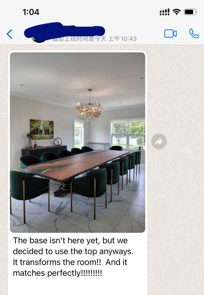 The production of a river table is a long and complicated process, we updates the looks on different stages to client time to time.