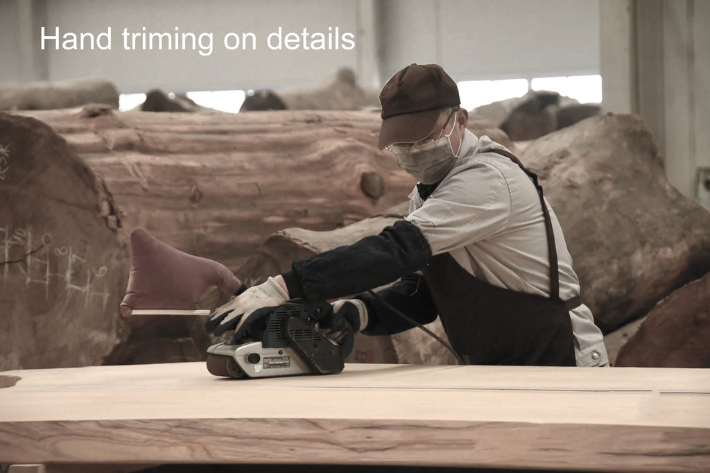After repairing the defects of the surface, the repair place may be slightly uneven,need to reflatten the surface, use the sand shaving machine to triming the concave and convex parts, make sure it's more smooth. The last grinding process, pure machine processing can not achieve satisfactory precision, need the full experienced carpenter to rework on it.