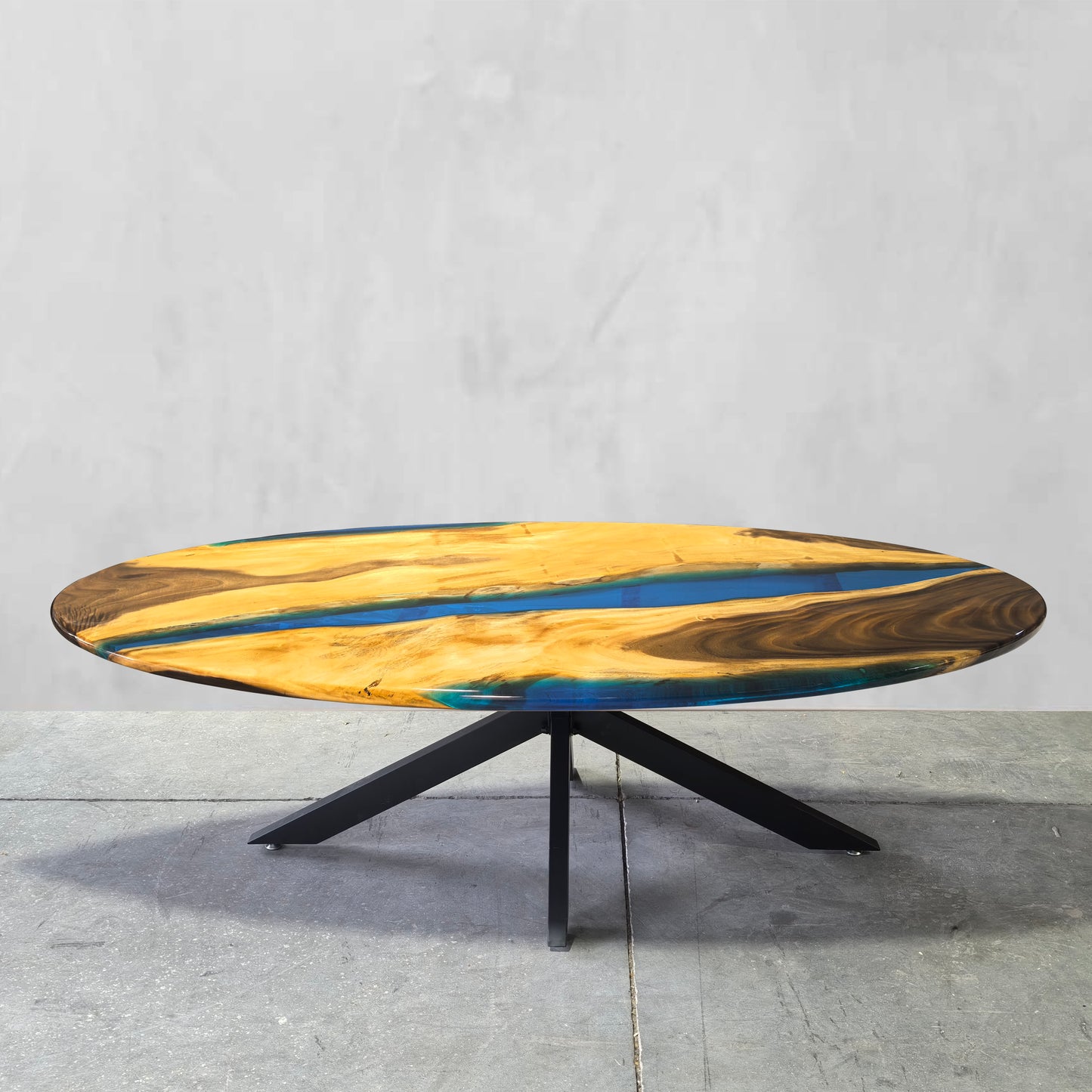 Light color blue resin river table large Luxury Oval dining table for 12 people